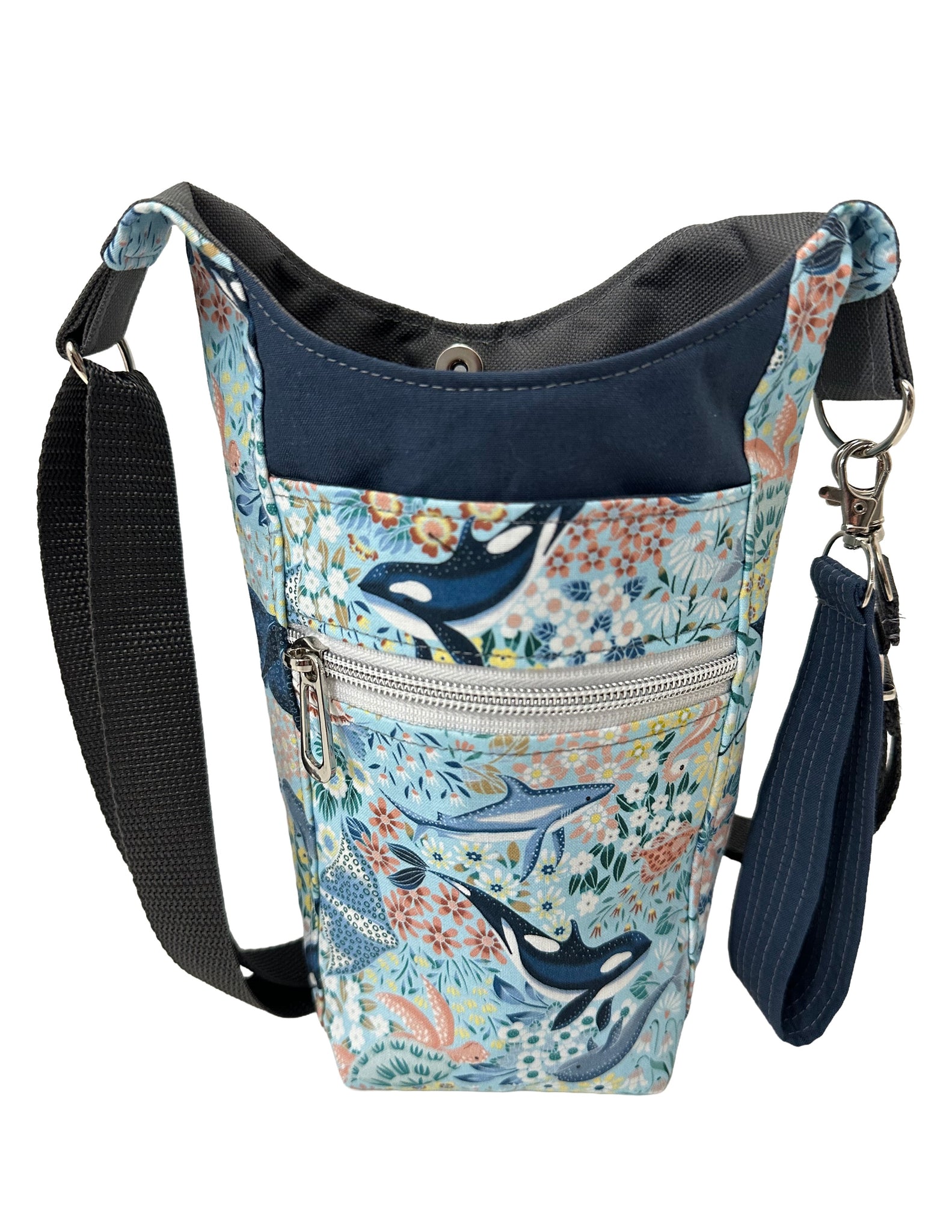Orca’s & More Crossbody Water Bottle Bag w/Cell Phone Pouch, Zipper Pocket and Key Fob